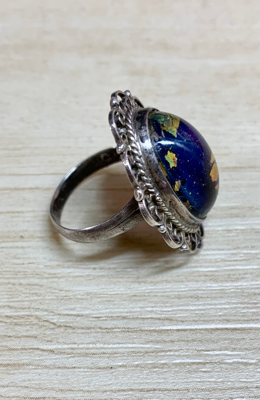 Sterling Silver Cobalt Blue Glass Ring, Size 5