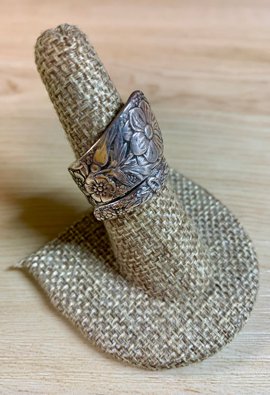 Floral Silver Plated Spoon Ring, Size 7